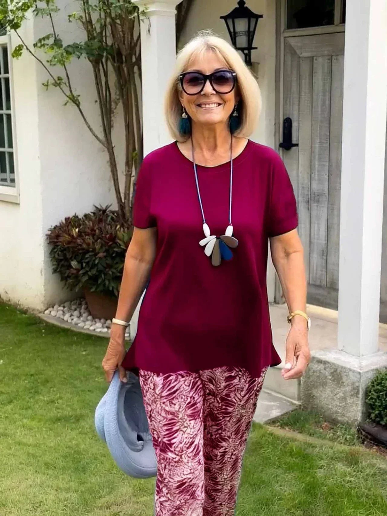 • Timeless Elegance: The combination of a tailored top and stylish printed trousers creates a refined yet relaxed look.